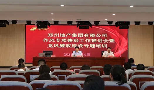 為進(jìn)一步轉(zhuǎn)變工作作風(fēng),加強(qiáng)黨風(fēng)廉政建設(shè),不斷將全面從嚴(yán)治黨引向深入,6月4日上午,鄭州地產(chǎn)集團(tuán)組織開(kāi)展作風(fēng)專(zhuān)項(xiàng)整治工作推進(jìn)會(huì)暨黨風(fēng)廉政建設(shè)專(zhuān)題培訓(xùn),深入學(xué)習(xí)貫徹習(xí)近平總書(shū)記關(guān)于全面從嚴(yán)治黨的重要論述,部署推進(jìn)落實(shí)集團(tuán)“作風(fēng)建設(shè)專(zhuān)項(xiàng)整治活動(dòng)”各項(xiàng)工作,嚴(yán)整集團(tuán)總部工作作風(fēng),涵養(yǎng)務(wù)實(shí)擔(dān)當(dāng)生態(tài),為集團(tuán)高質(zhì)量發(fā)展保駕護(hù)航。會(huì)議由集團(tuán)黨委委員、監(jiān)事會(huì)主席李靜波主持,集團(tuán)總部全體人員及各子公司主要負(fù)責(zé)人共計(jì)120余人參加。