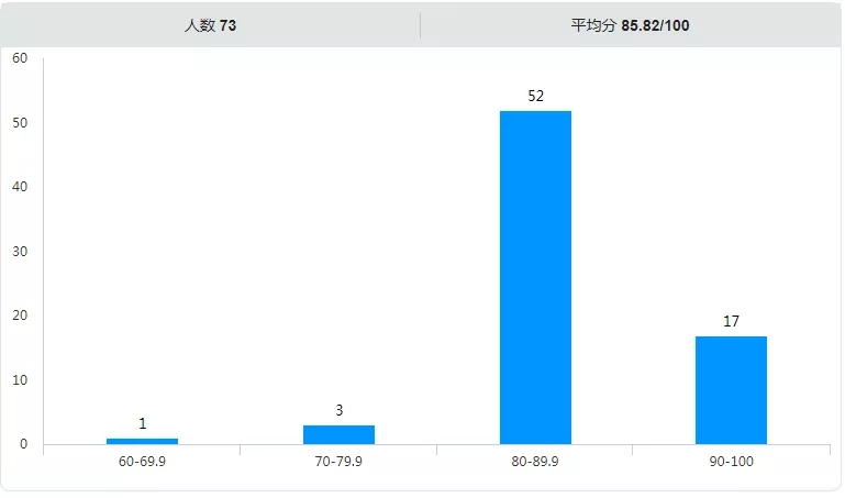 測(cè)試整體成績(jī)優(yōu)異,95分以上44人,占比62%,其中成績(jī)特別突出人員有周河森、王曉婕、史光磊、劉璐、張瑜、劉鳳華、馬然然、陳娟、孫潔、劉玉、文化、韓影、王一聰、靳紅群、劉潔瑩、李萌等16名同志。