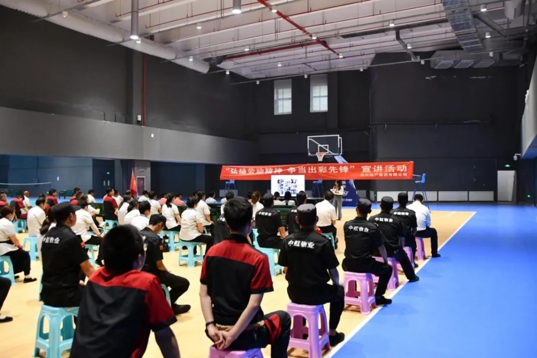 宣講團第一組赴鄭地奧體公司在奧體中心綜合訓練館展開宣講,鄭地奧體、中航物業(yè)保潔及安保等一線員工共100余人參加了此次宣講活動。來自黨群黨支部王曉婕、人力資源黨支部馬遠俊、黃河兩岸公司黨支部吳林熹、都市開發(fā)公司黨支部馮靜、投資管理公司黨支部范瑩,從學習貫徹習近平總書記重要回信精神、“講好黃河故事”、“ 絲路精神”和共筑中國夢等方面,通過身邊人身邊事,以小見大,講述了一個個平凡而偉大的勞動者的故事,號召全體黨員同志進一步樹立勞動觀念、弘揚勞動精神,爭做出彩鄭地人,以一流的業(yè)績和實際行動擔當重任,為集團高質(zhì)量發(fā)展貢獻力量。