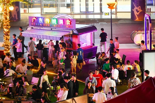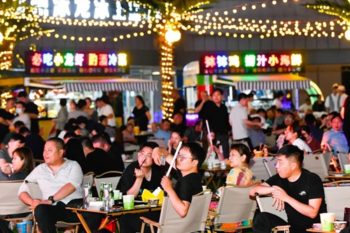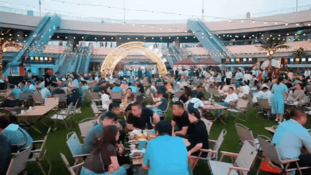 熠熠星光耀向夜空,呼應著(zhù)霓虹閃爍的奧體中心,飄散的煙火氣和美食的香氣充斥著(zhù)整個(gè)下沉空間,舞臺音樂(lè )節奏歡快、火爆酷炫,在霓虹交錯的空間里,一天的時(shí)間仿佛被夜市拉長(cháng),這是年輕人帶給這座城市的無(wú)限活力。