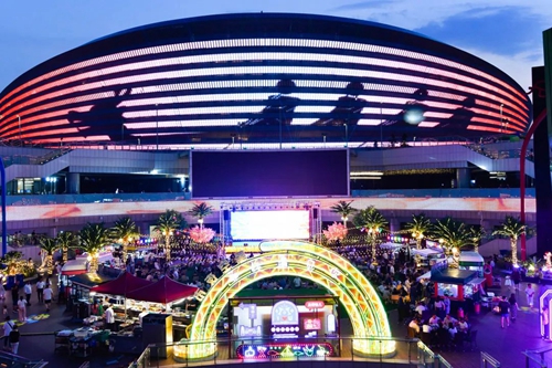6月13日晚七點(diǎn)半,隨著(zhù)夜幕降臨,華燈初上,鄭州奧體中心星空夜市終于震撼開(kāi)市,以美食致敬生活,以運動(dòng)釋放壓力,一鍵開(kāi)啟專(zhuān)屬于鄭州人絢麗多彩的夏日夜生活。