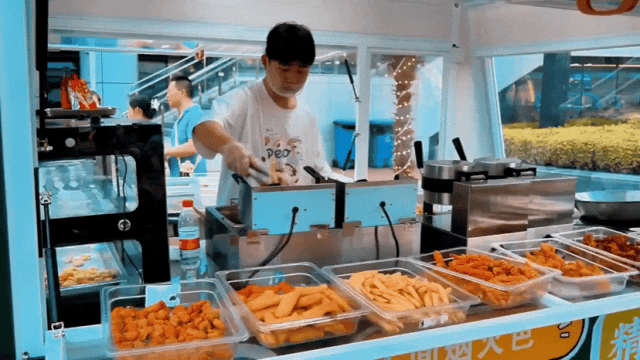 在夜市兩旁,章魚(yú)燒、特色酥肉、撈汁小海鮮、小龍蝦……十余家風(fēng)味小吃店一字排開(kāi),琳瑯滿(mǎn)目,吸引了不少消費者駐足品嘗。