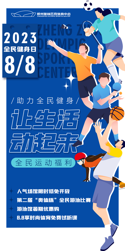 今年的全民健身日,鄭州奧體將延續人氣場(chǎng)館低免開(kāi)放的慣例,并推出一系列全民運動(dòng)福利,呼吁廣大群眾保持良好的運動(dòng)習慣,讓健身成為生活的一部分,真正享受到體育帶來(lái)的健康和快樂(lè )!