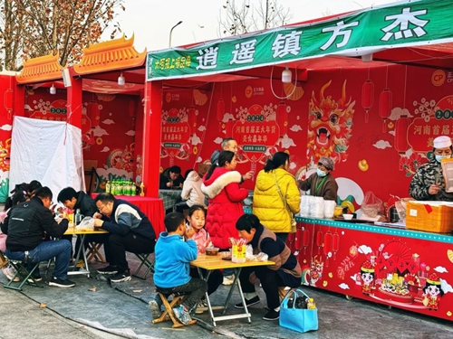 春節期間正常營(yíng)業(yè),全天候不間斷熬煮香噴噴、熱騰騰的胡辣湯,使美食街這家攤位成功出圈,一碗湯一張餅,日銷(xiāo)量高達3000份,濃濃河南特色,滿(mǎn)足了眾多游客的心和胃。