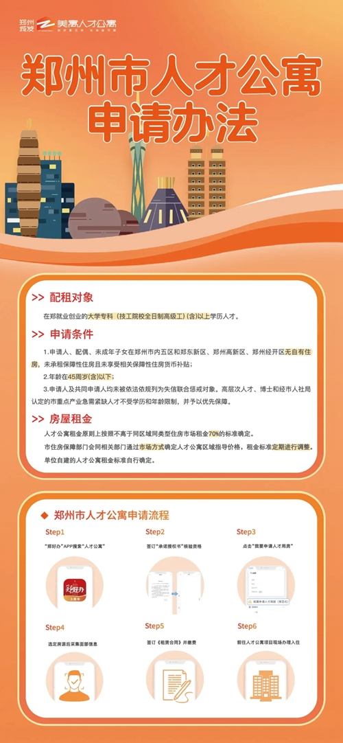 本批次配租全流程通過(guò)線(xiàn)上進(jìn)行,按照“一網(wǎng)通辦、一網(wǎng)通管”的原則,申請人可登錄“鄭好辦”APP(“一件事專(zhuān)區”→“住房保障一件事”),進(jìn)入人才公寓配租模塊,按照提示進(jìn)行申請、選房、簽約和退出。