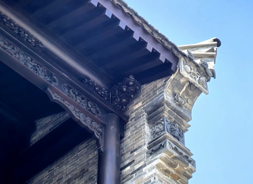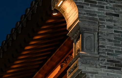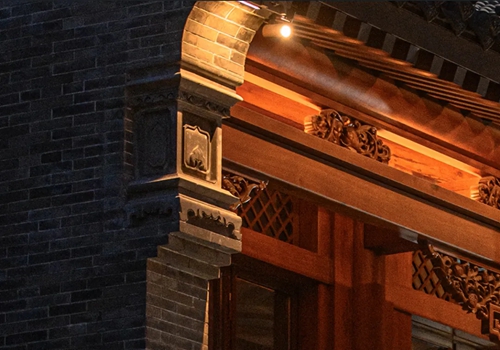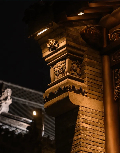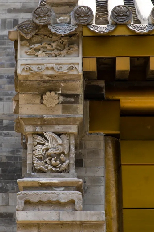 與之相對的17號樓主題為仙鶴,主題靈感來(lái)自于“仙鶴的故鄉”鶴壁。建筑上精美的墀頭也表達了此棟院子的主題,其上段位仙鶴,寓意松鶴延年,墀頭下端位仙鹿,寓意福祿綿長(cháng)。而這處雕刻精美又涵義豐富的墀頭設計來(lái)源于河南鶴壁的古城摘星臺公園。