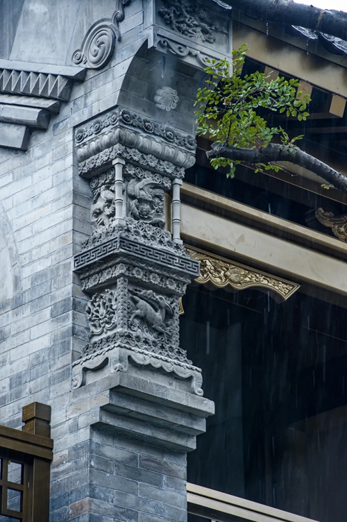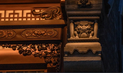 12號樓主題為獅子,主題來(lái)源于三門(mén)峽靈寶函谷關(guān),象征“事事如意”的獅子在柱子、平板枋、額枋、卡子花、假梁頭等構件均有出現。