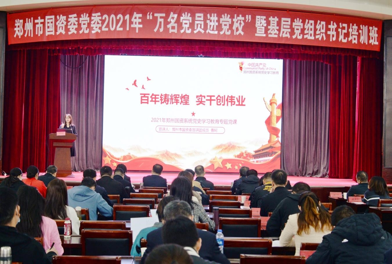10月19日,鄭州市國資委黨委舉行2021年“萬(wàn)名黨員進(jìn)黨校”暨基層黨組織書(shū)記培訓活動(dòng),鄭州地產(chǎn)集團西流湖公司黨支部曹珂同志作為市國資委宣講團成員,向市國資委黨委市管企業(yè)優(yōu)秀黨支部書(shū)記、優(yōu)秀共產(chǎn)黨員130余人進(jìn)行了以《百年鑄輝煌 實(shí)干創(chuàng )偉業(yè)》為主題的黨課宣講。