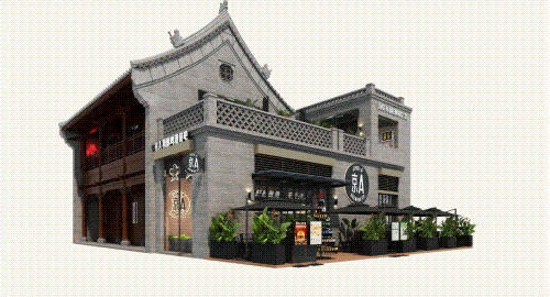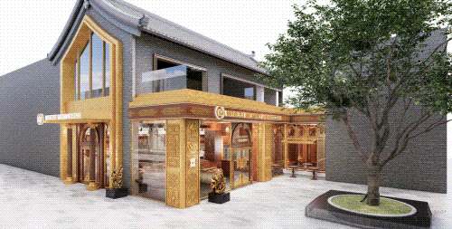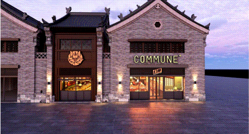 以COMMUNE幻師的門店設(shè)計(jì)為例——從效果圖可以看出,建筑外部以青灰色磚墻復(fù)刻商代建筑肌理,檐角神獸造型融入現(xiàn)代燈光設(shè)計(jì),整體風(fēng)格充滿著古樸與時(shí)尚。店內(nèi)則以暖色調(diào)營(yíng)造松弛感,酒墻擺滿了來(lái)自全球的精釀。每當(dāng)味蕾觸碰到精釀的麥香,窗外同時(shí)飄入來(lái)自3600年前夯土的氣息——在這里,顧客喝的不是單純的酒,而是歷史與現(xiàn)代的奇妙敘事。