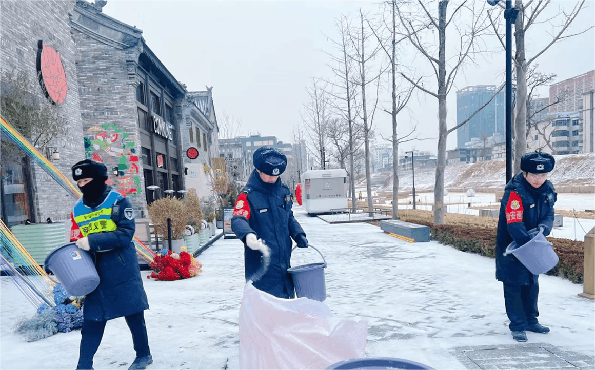 為保障亳都·新象街區(qū)安全運(yùn)行,商都發(fā)展公司提前部署應(yīng)對(duì)舉措。備足除雪物資,組織物業(yè)連夜掃雪除冰;通過(guò)商戶群、街區(qū)循環(huán)廣播推送防寒防凍、防滑提醒;安排工程人員對(duì)設(shè)施設(shè)備做足保溫防護(hù),全方位排查隱患,為商戶與市民筑牢安全屏障。